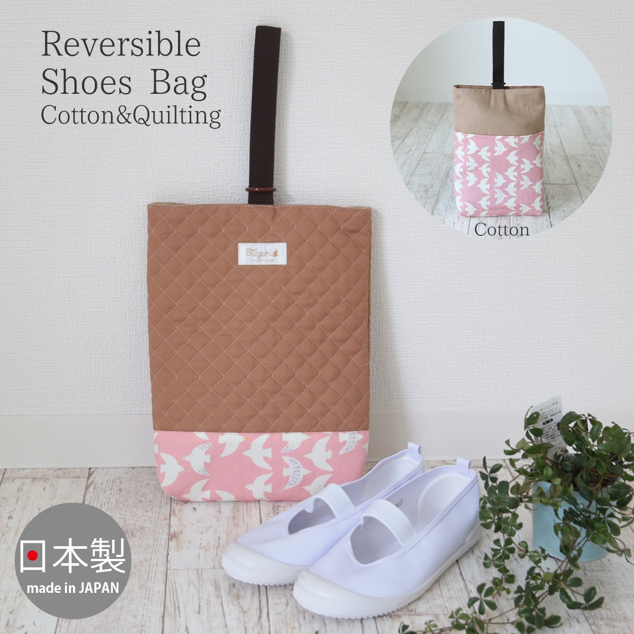 コットン生地とキルティング生地の二重仕立てのリバーシブルのこだわりシューズバッグ!