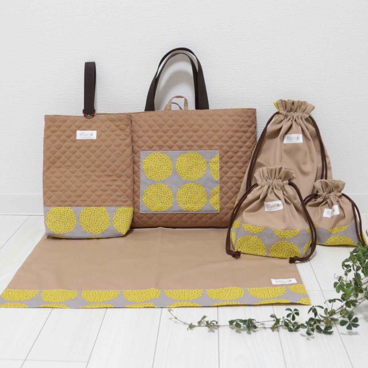同柄のレッスンバッグや巾着やランチョンマットもあります。同柄で揃える事で、お子様が自分の持ち物を認識しやすくなります。
